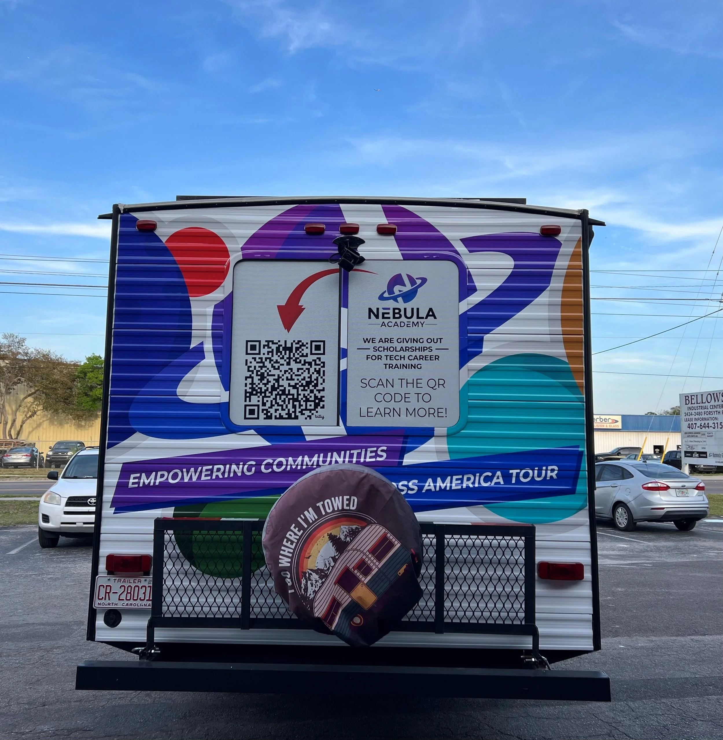 Your logo prominently displayed on our “TechBridge: Empowering Communities Across America Tour” RV, which will travel through Florida, Georgia, Alabama, Louisiana, Mississippi, Texas, Arkansas, Kentucky, Tennessee, Ohio, and Michigan.