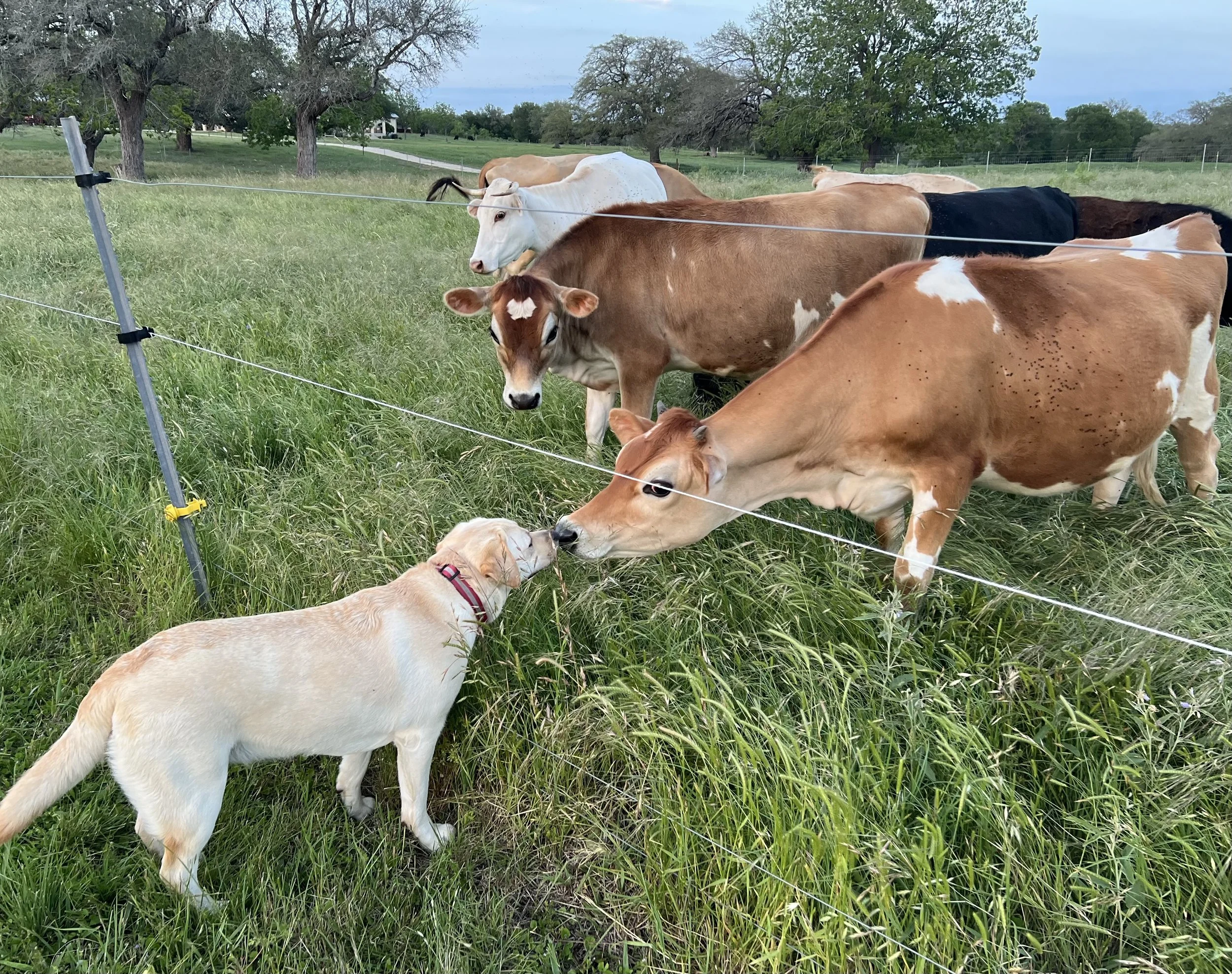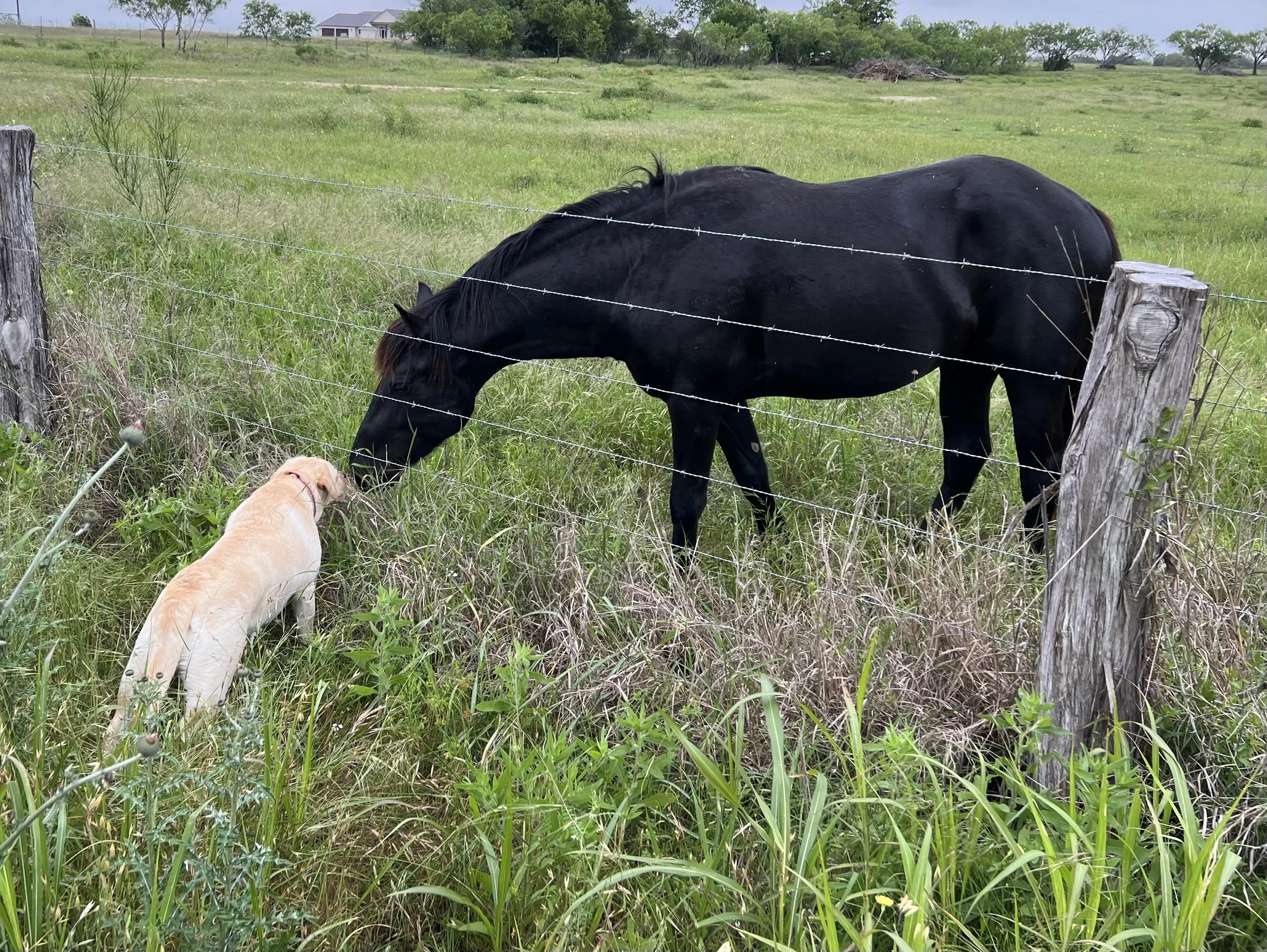 Echo has relished her freedom just as much, making new friends at every stop. In Sequin, TX, she befriended Lacey, a spirited Border Collie. They've become inseparable—Lacey even stops by our RV to see if Echo can come out to play. It's heartwarming to watch Echo explore the farm, tentatively approaching cattle and even meeting a horse for the first time. While she's content to give gentle kisses, Lacey, true to her breed, tries her best to herd them. Their playful dynamics are a joy to watch and a reminder of the simple pleasures of life.