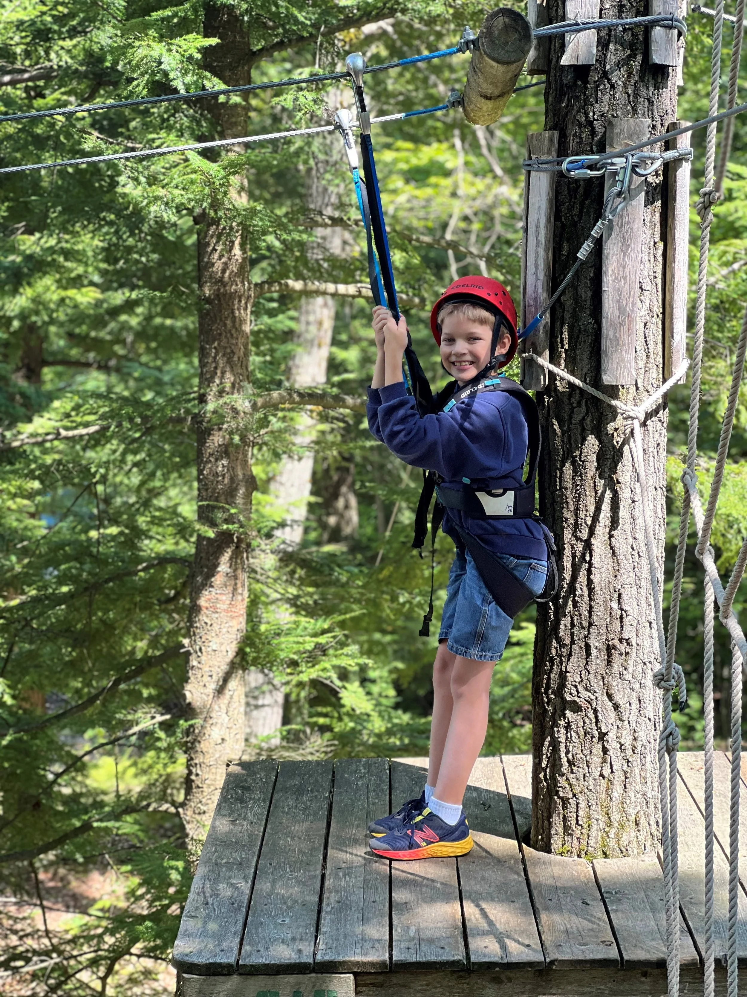 Yes he is smiling here, but it did take a bit to get him to just let go and trust the equipment would get him to the other side safely.