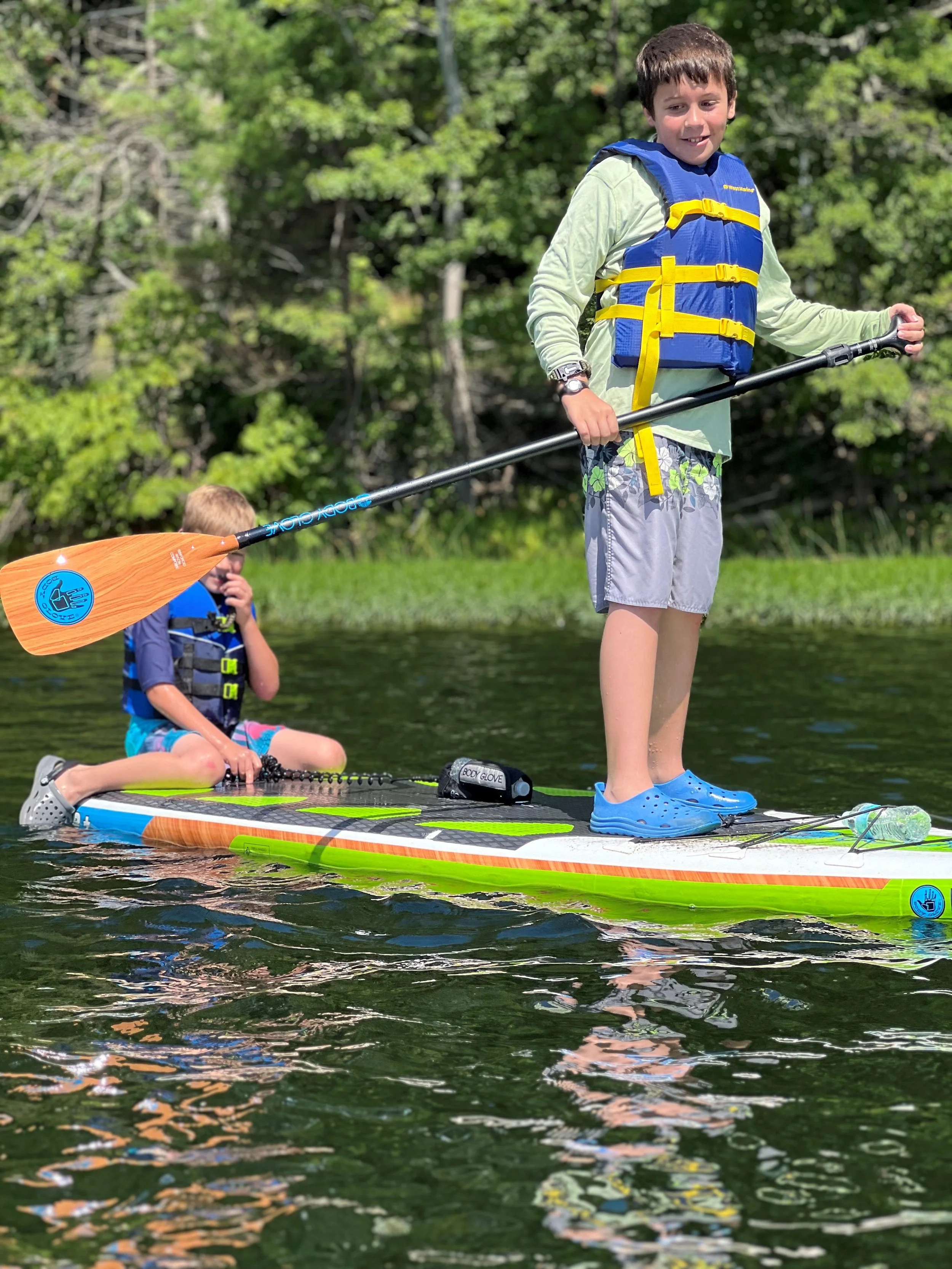 Learning to paddle board is a great way to build confidence, and trust with your brother as a passenger on board. Balance is everything...